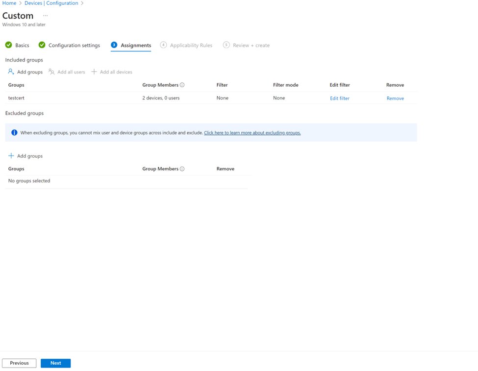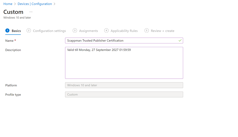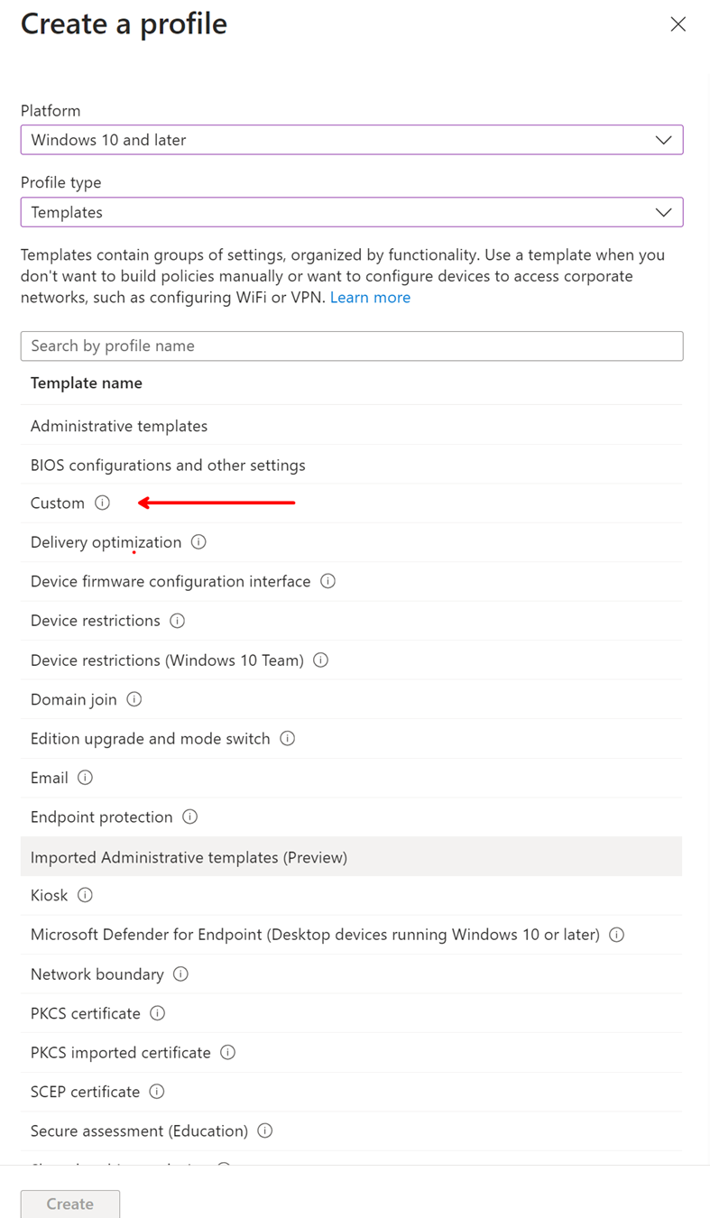 3. Create custom Intune profile setting