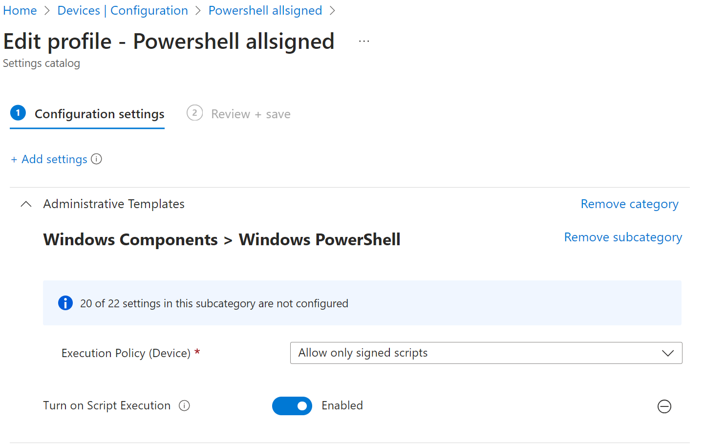 ### You can configure the ALL Signed policy in Intune with the following Administrative Template.